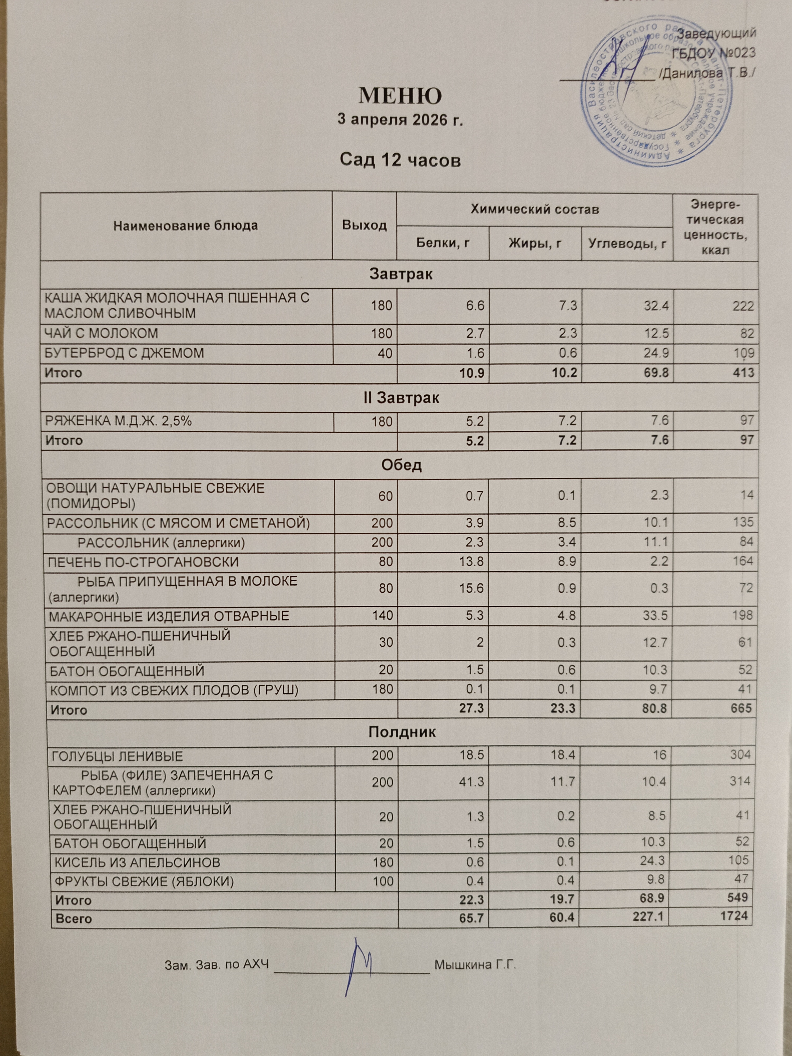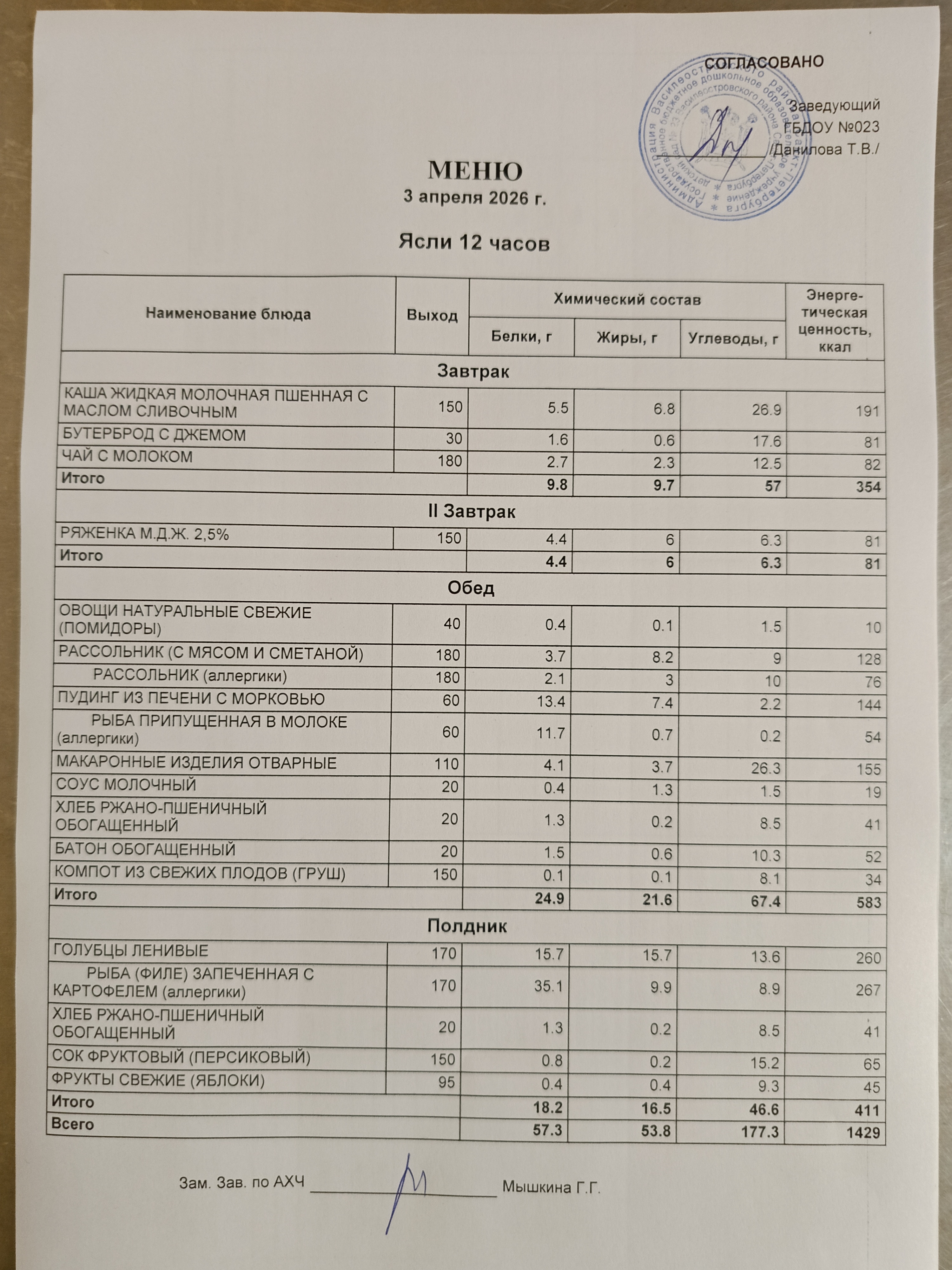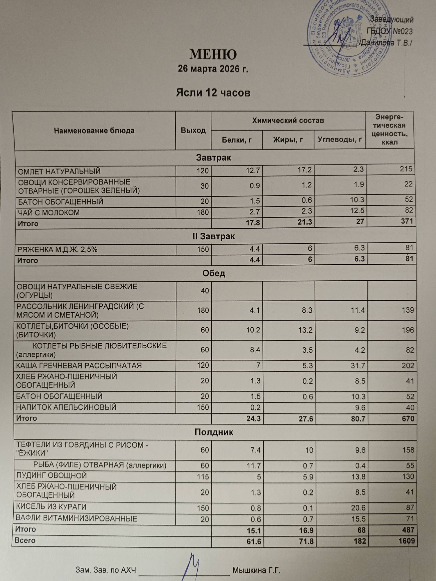 | меню ясли | меню сад |