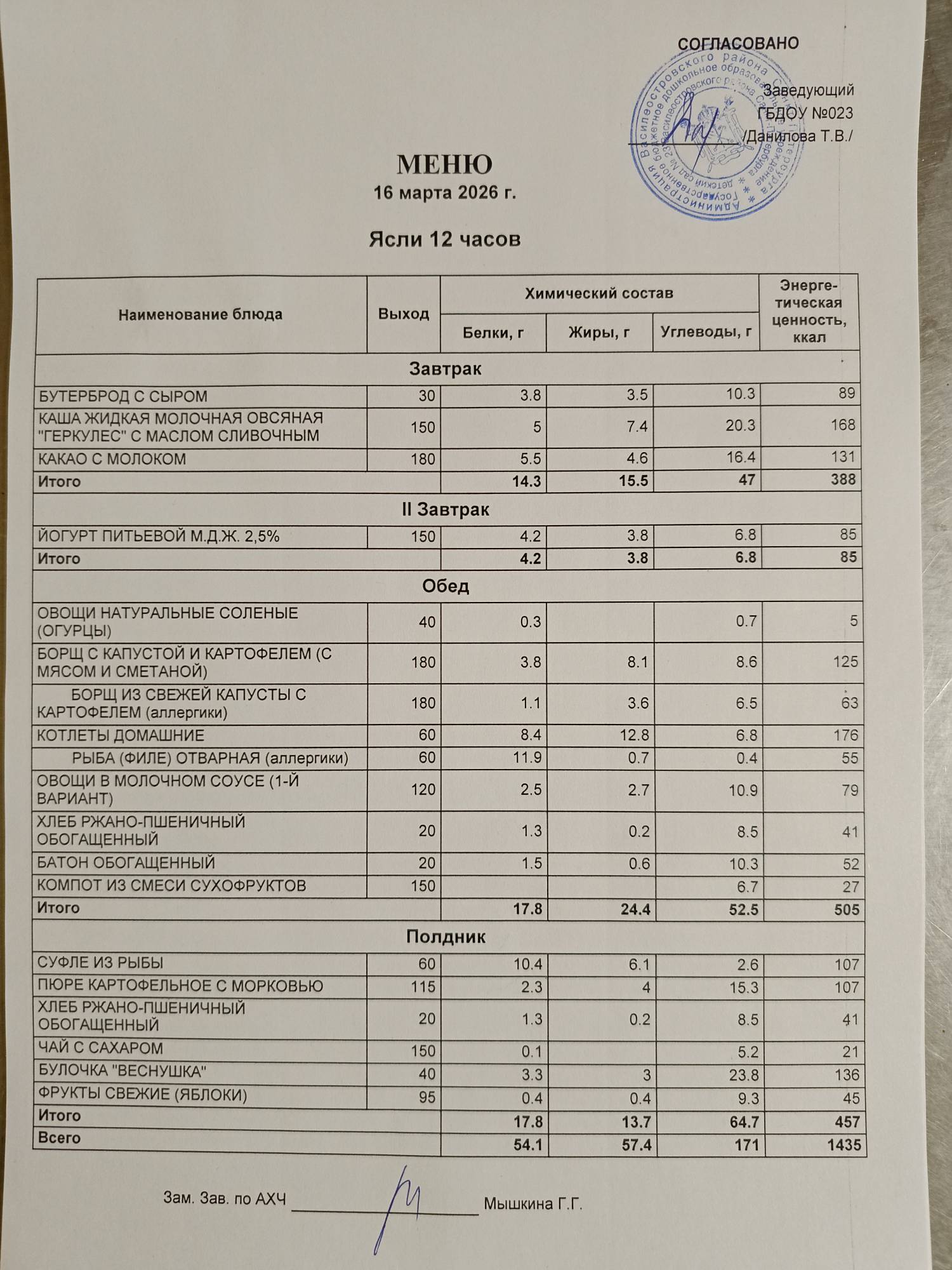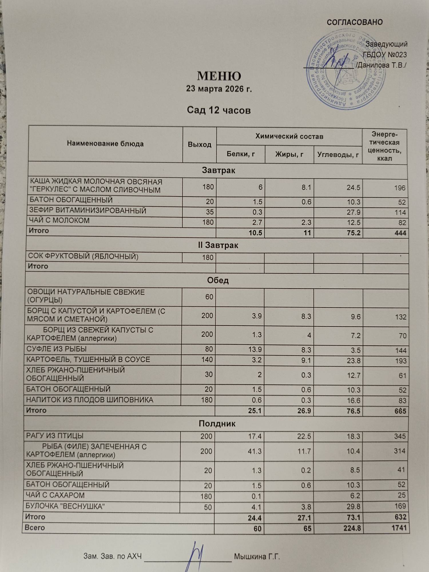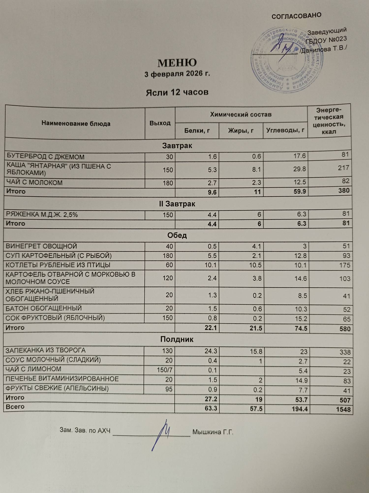 | меню ясли | меню сад |