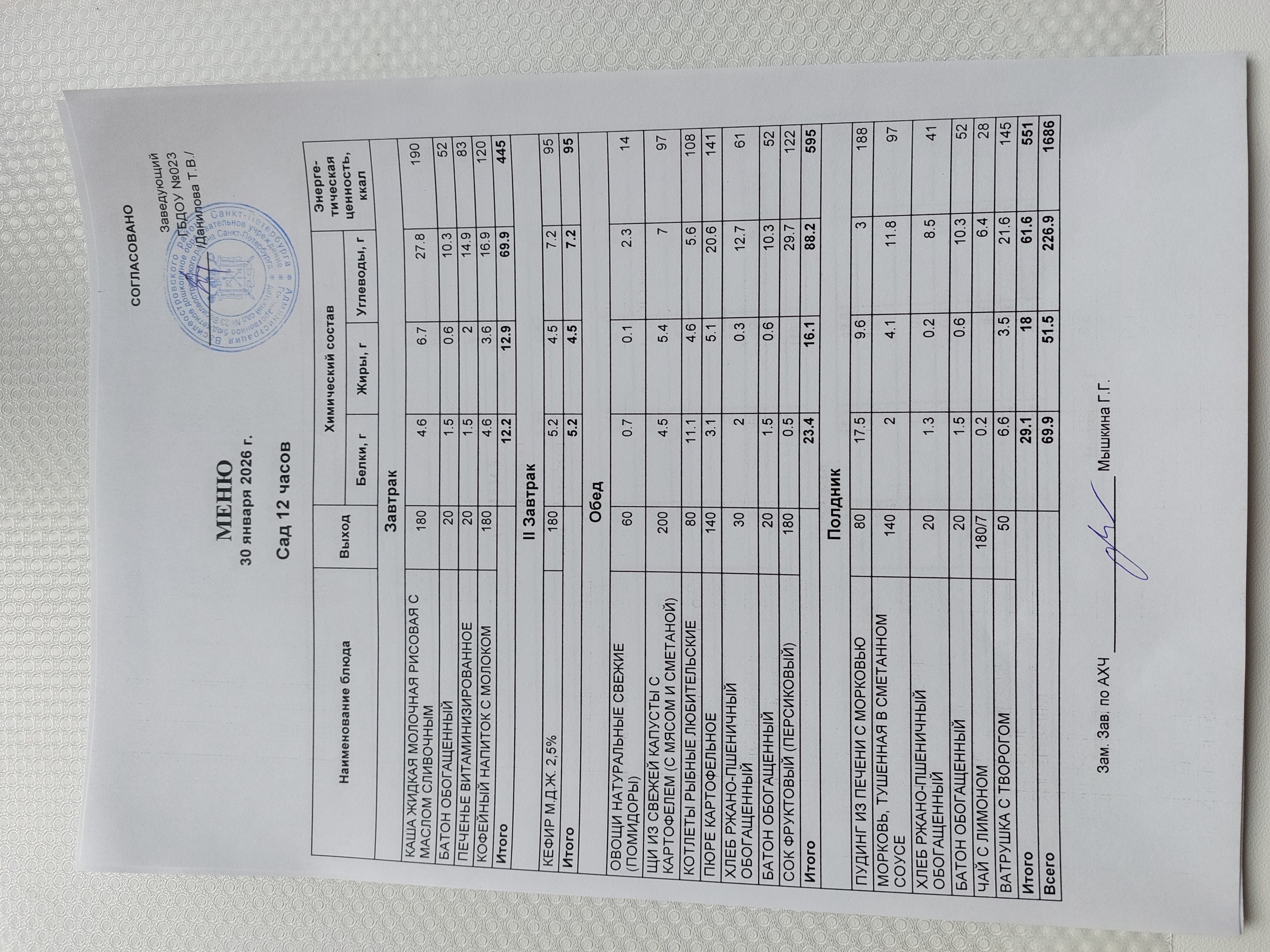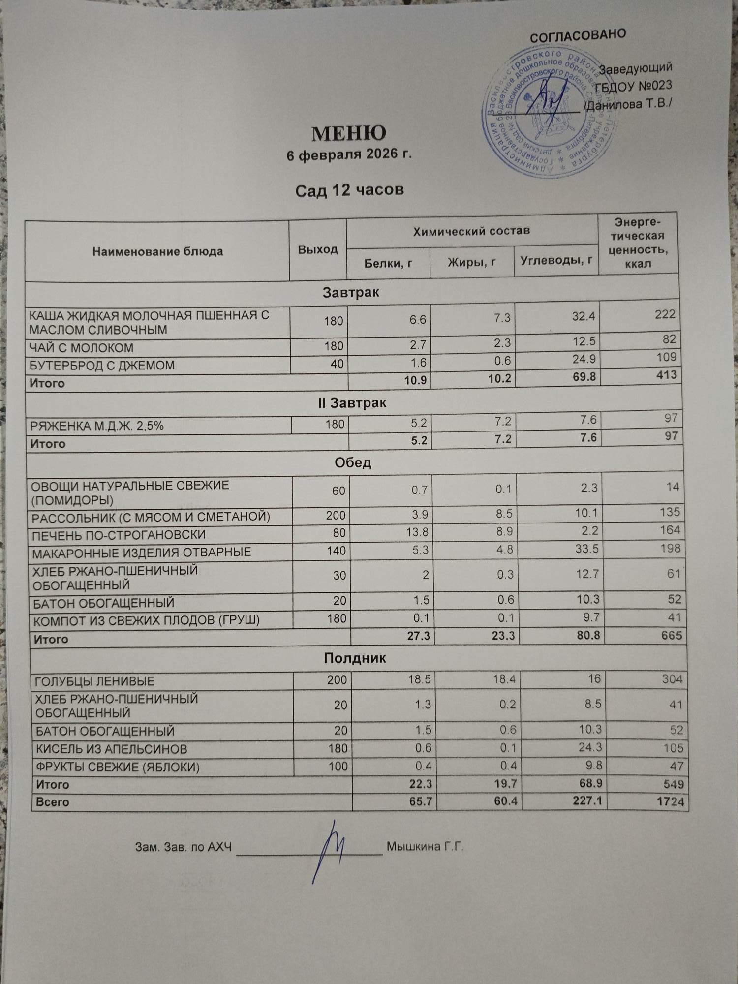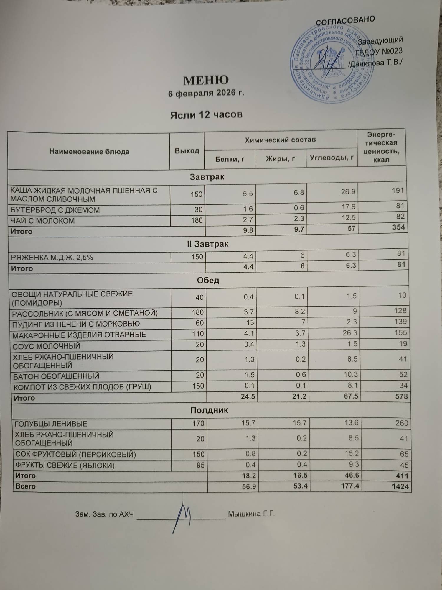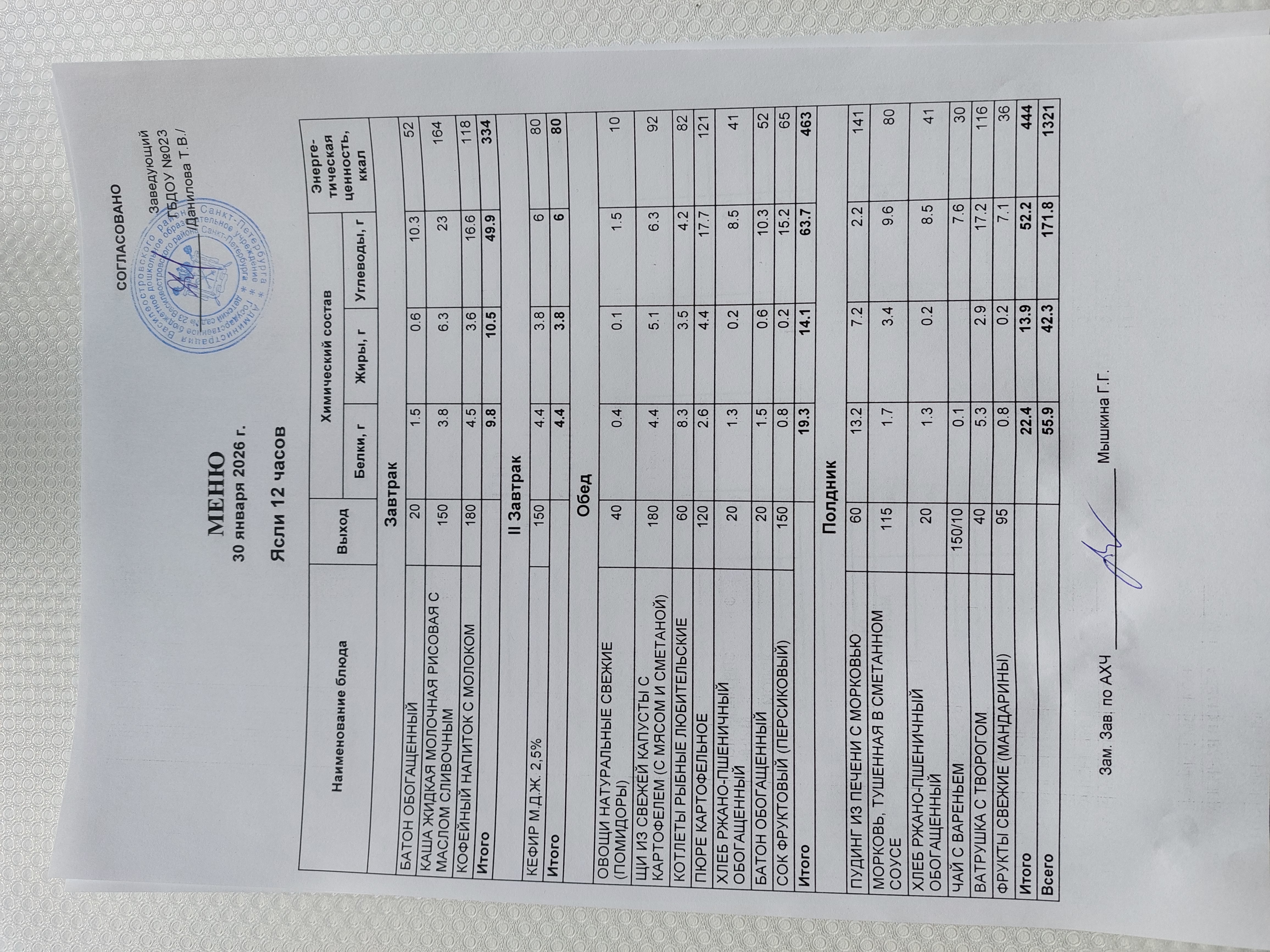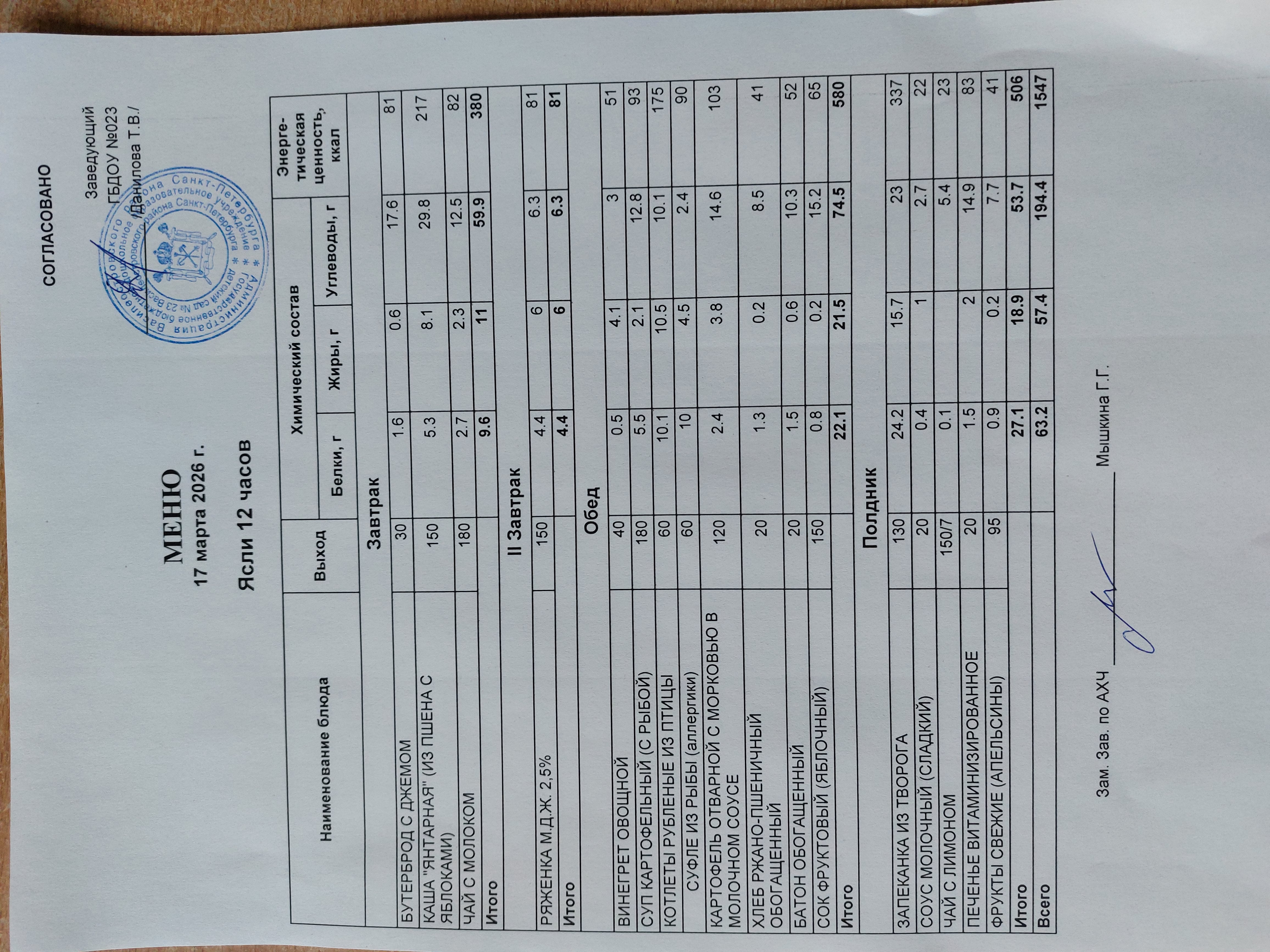 Ответственное лицо по питанию зам. зав. по АХЧ Мышкина Галина Геннадьевна (приказ от 29.08.2025 № 21/8-ОД)