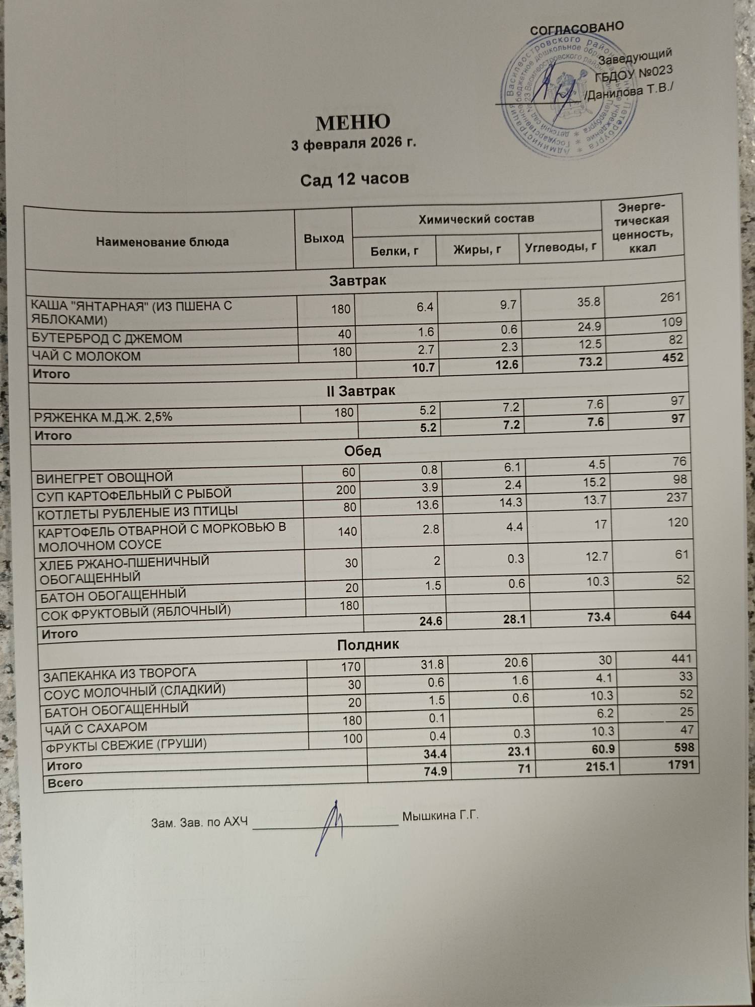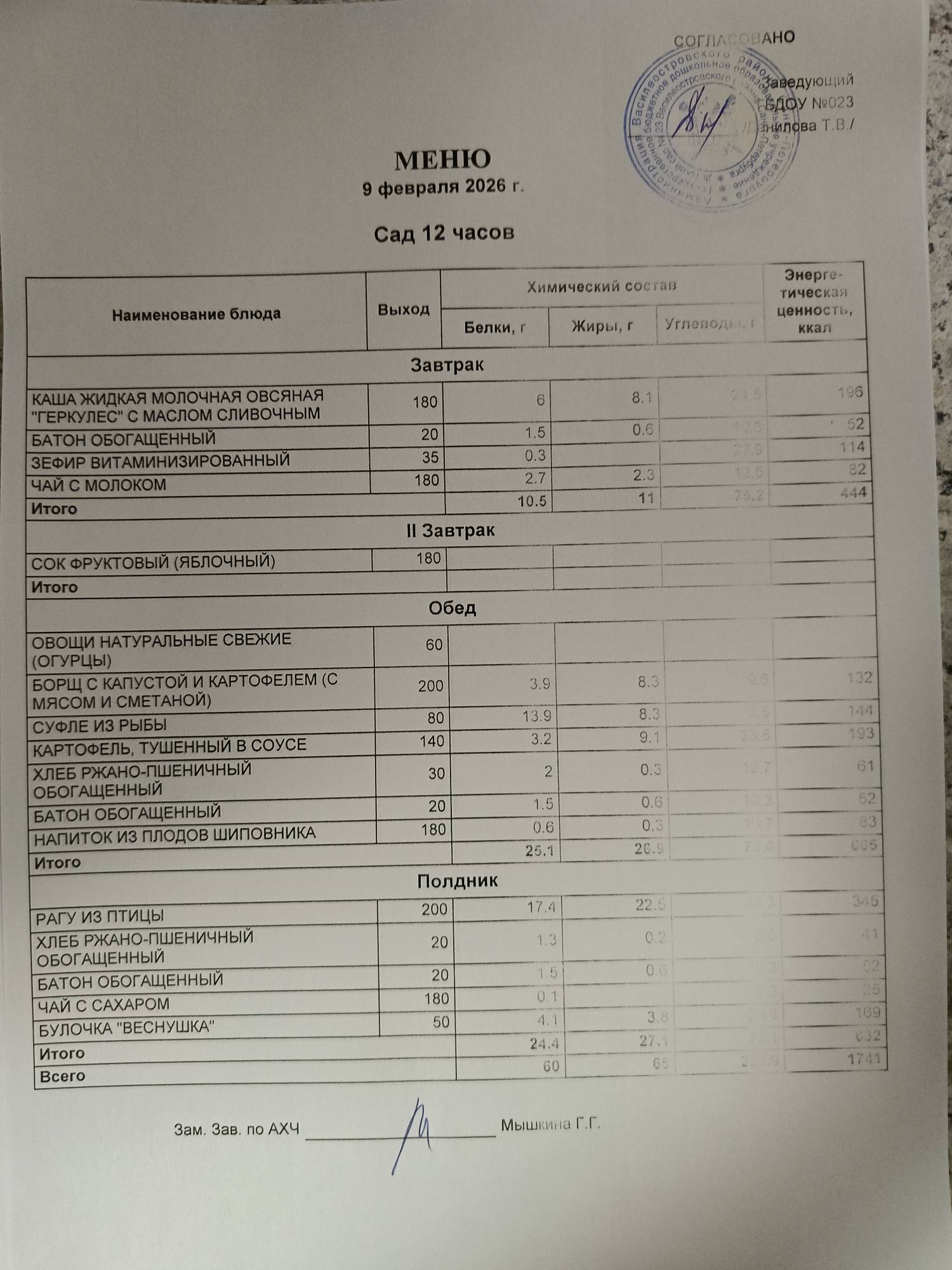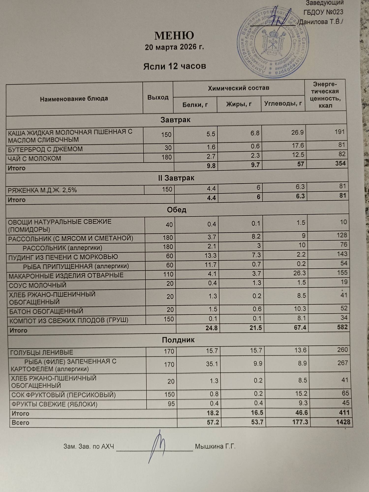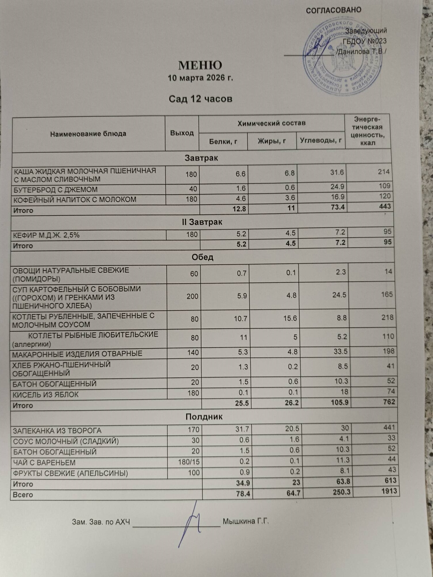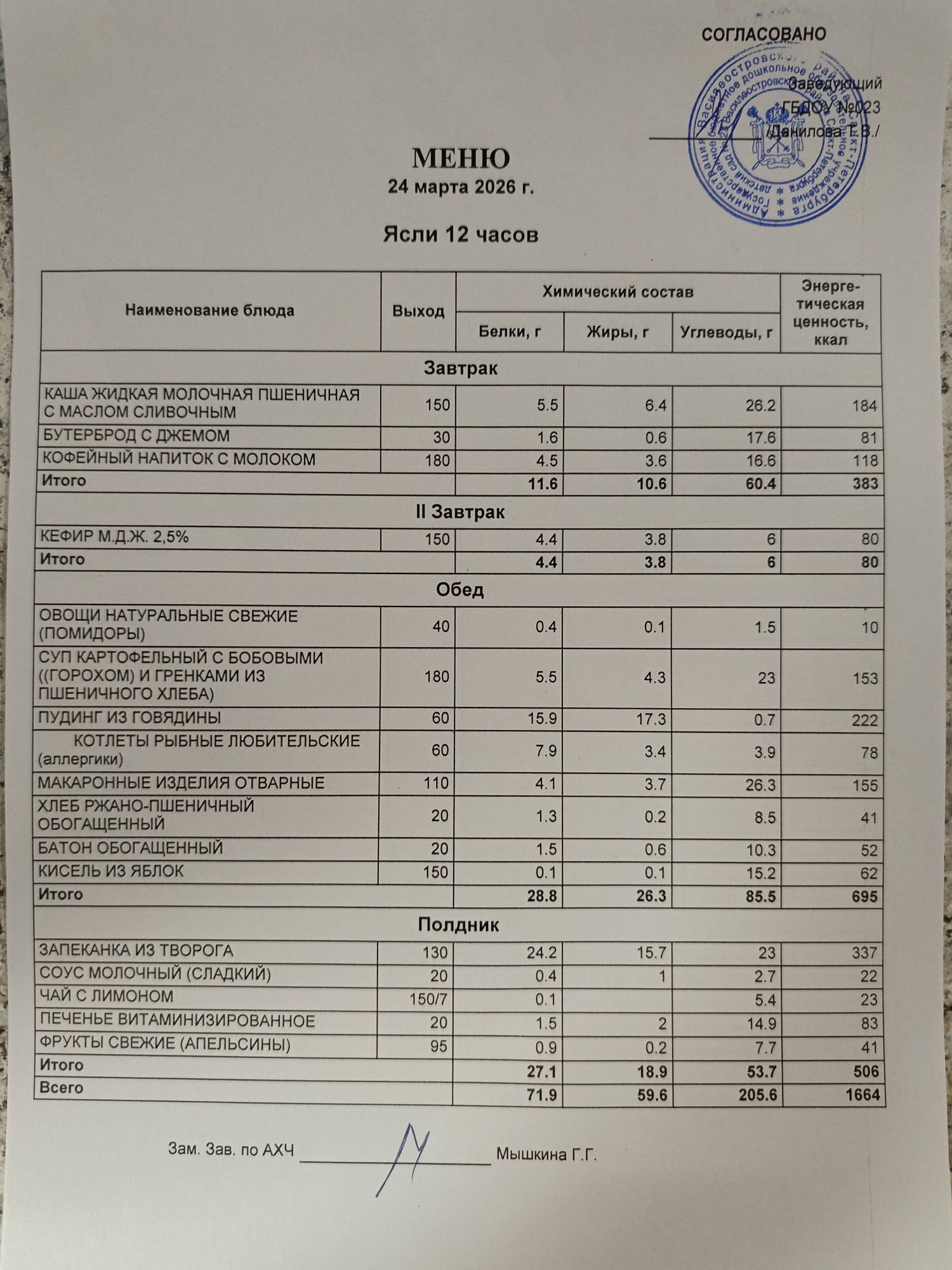 Ответственное лицо по питанию зам. зав. по АХЧ Мышкина Галина Геннадьевна (приказ от 29.08.2025 № 21/8-ОД)