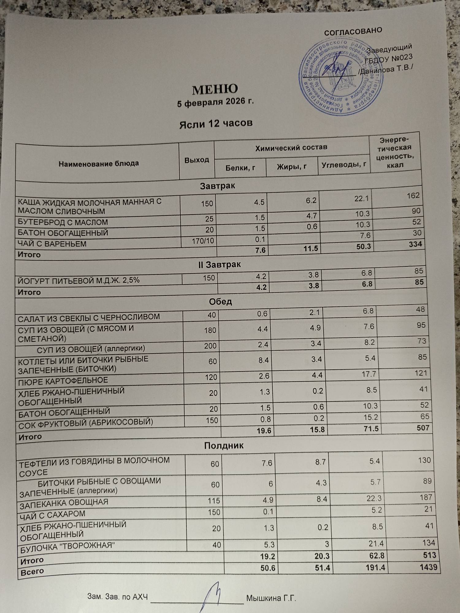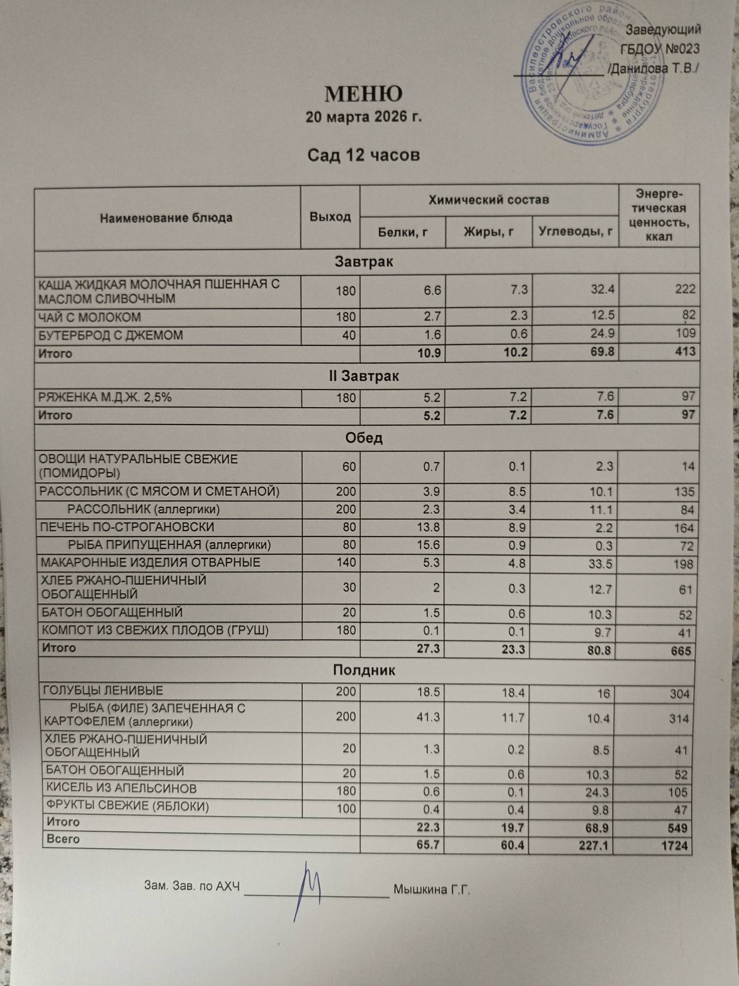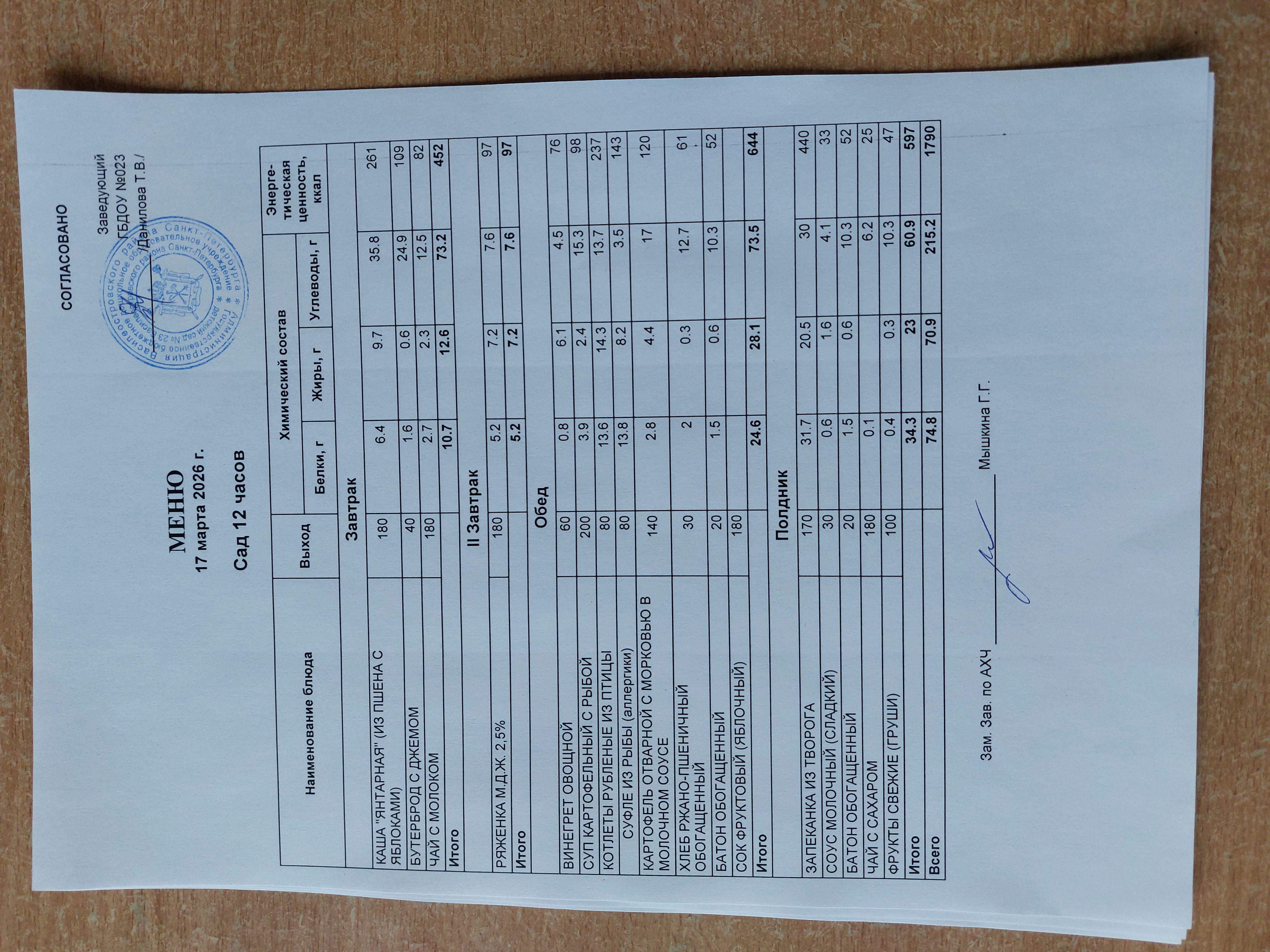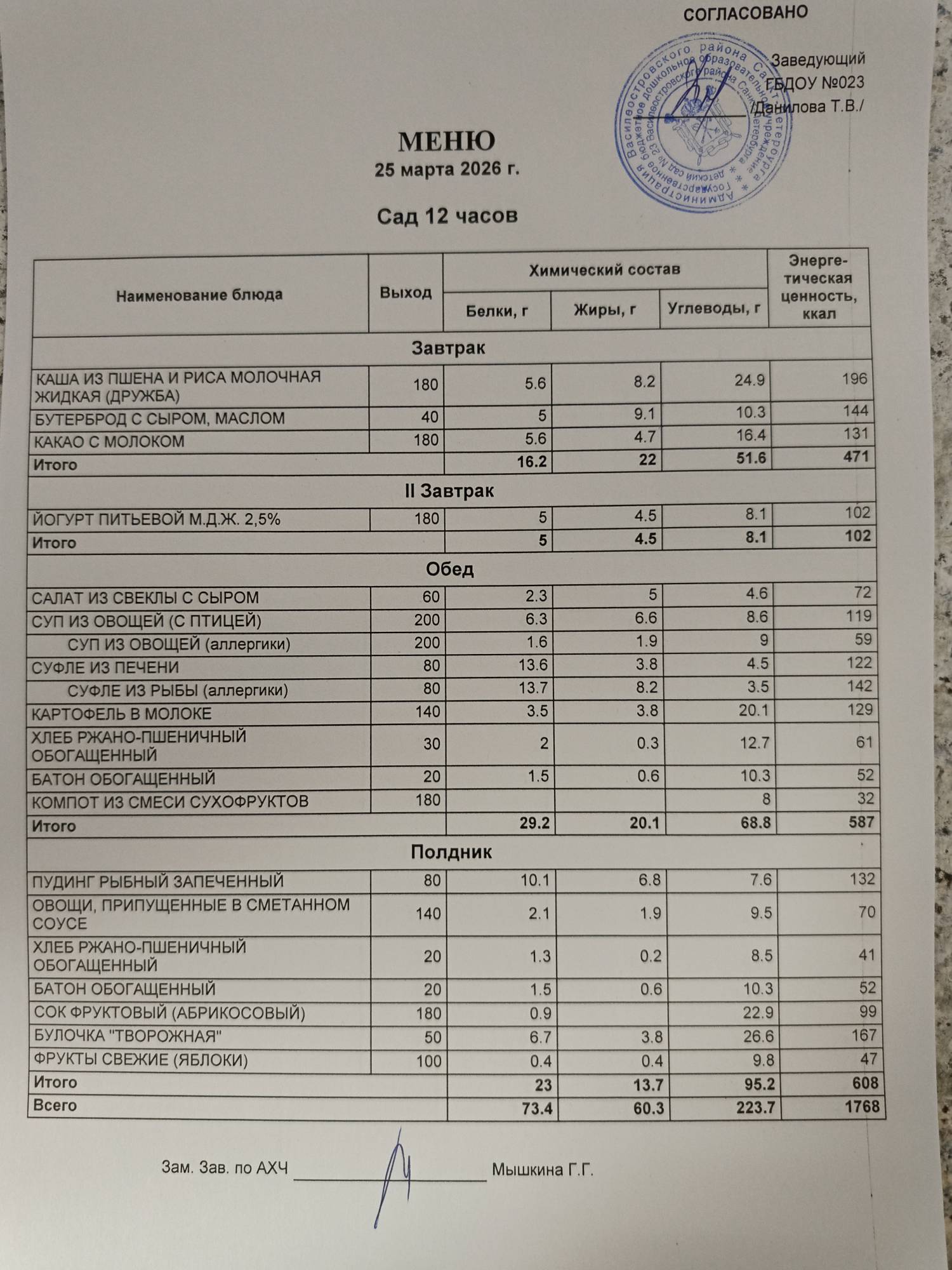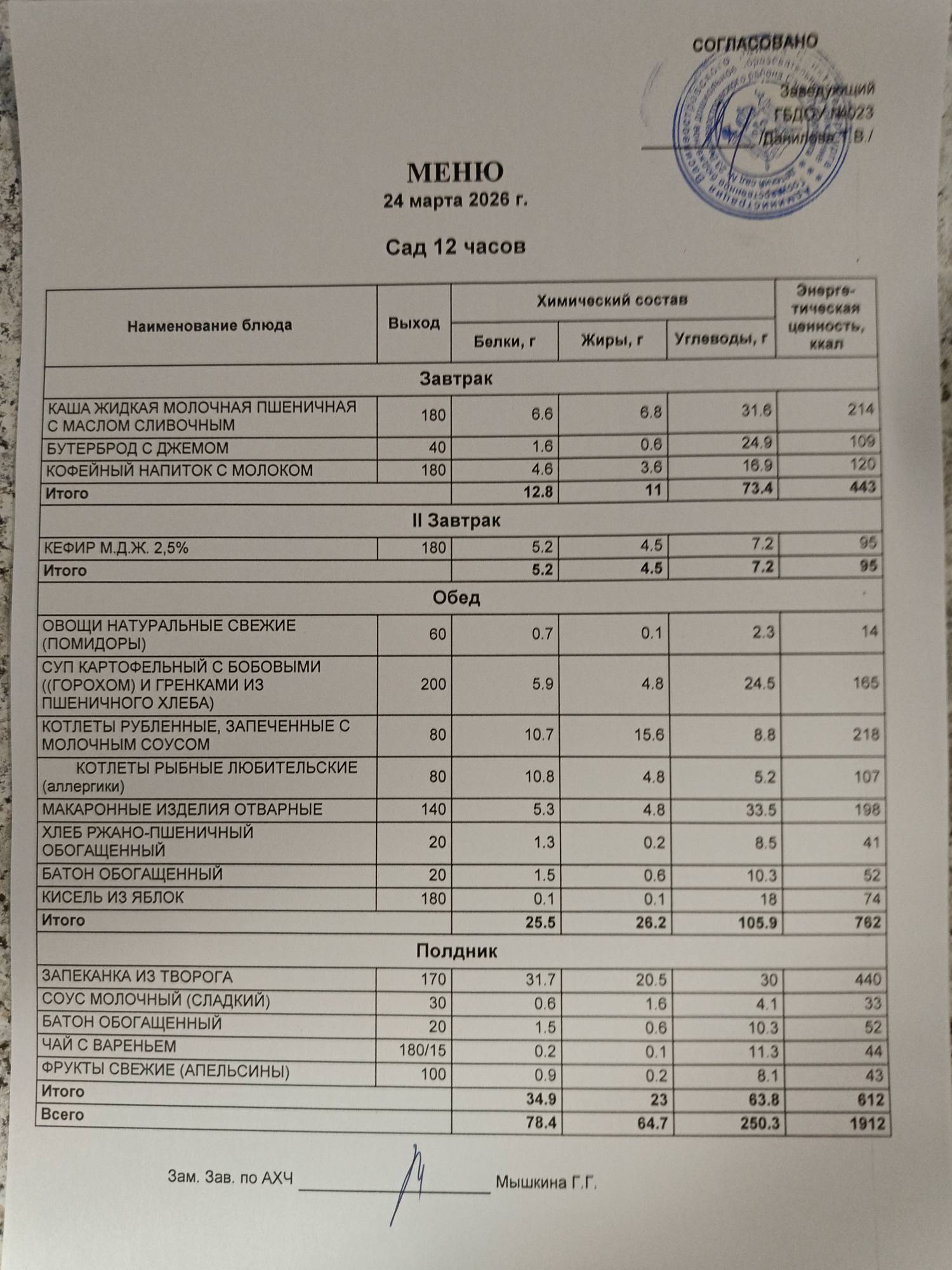 Ответственное лицо по питанию зам. зав. по АХЧ Мышкина Галина Геннадьевна (приказ от 29.08.2025 № 21/8-ОД)