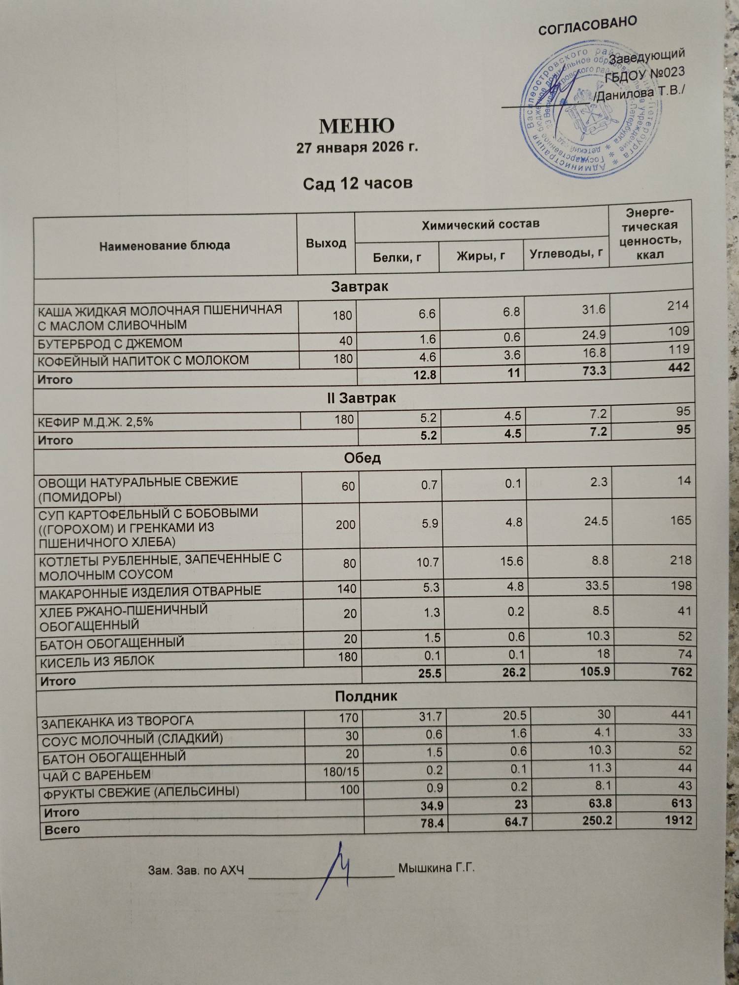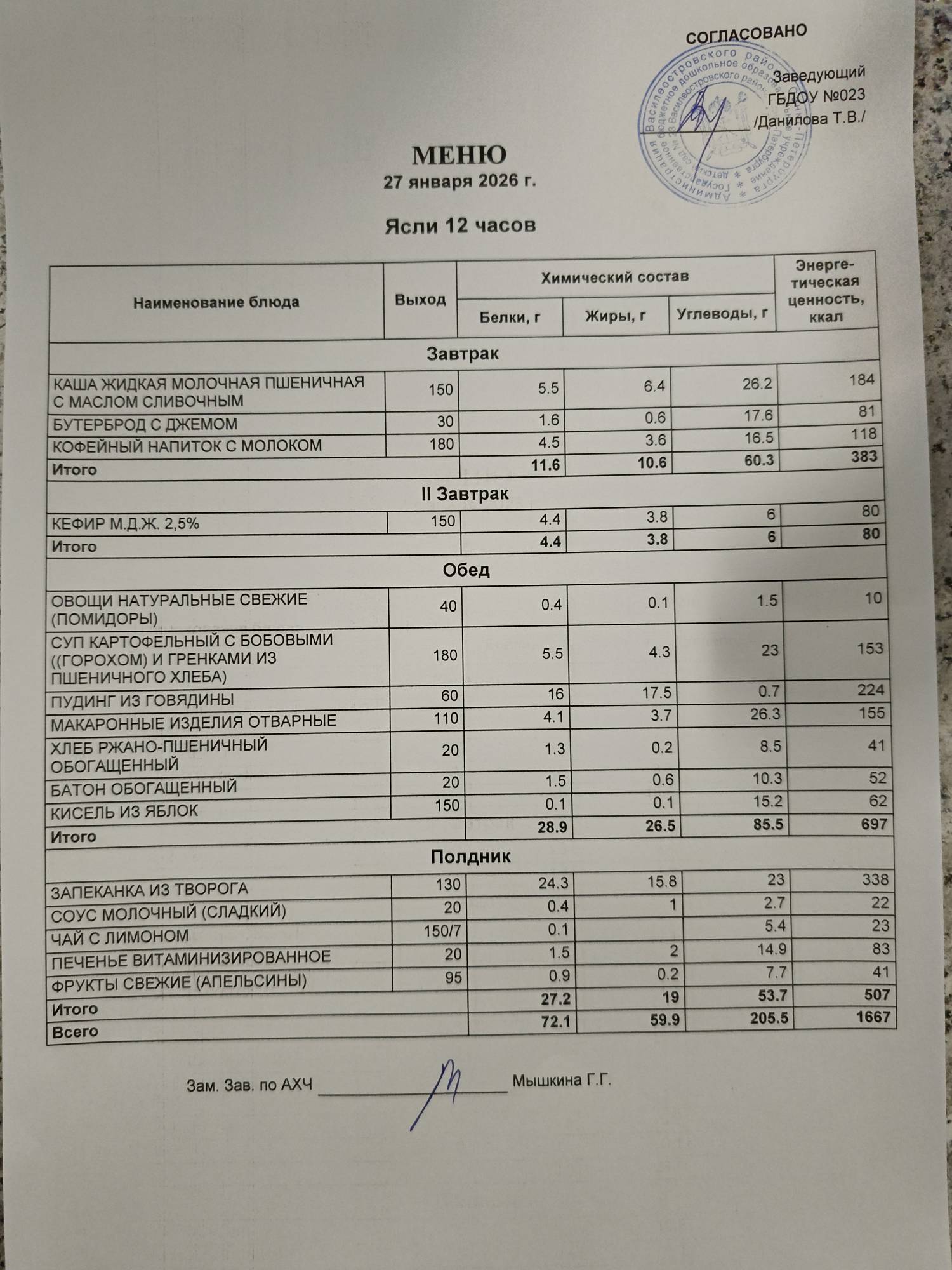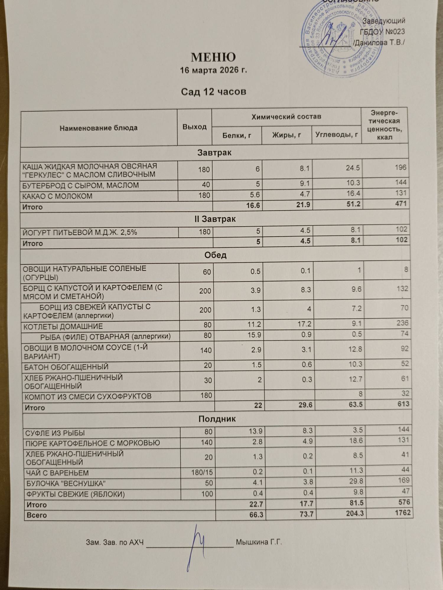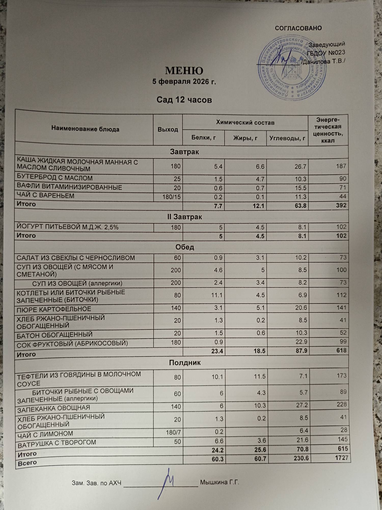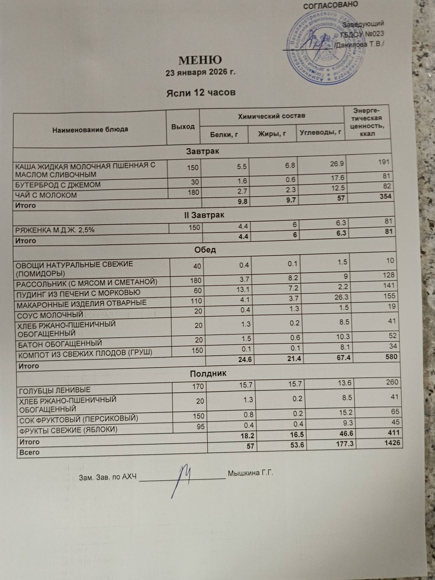 Ответственное лицо по питанию зам. зав. по АХЧ Мышкина Галина Геннадьевна (приказ от 29.08.2025 № 21/8-ОД)