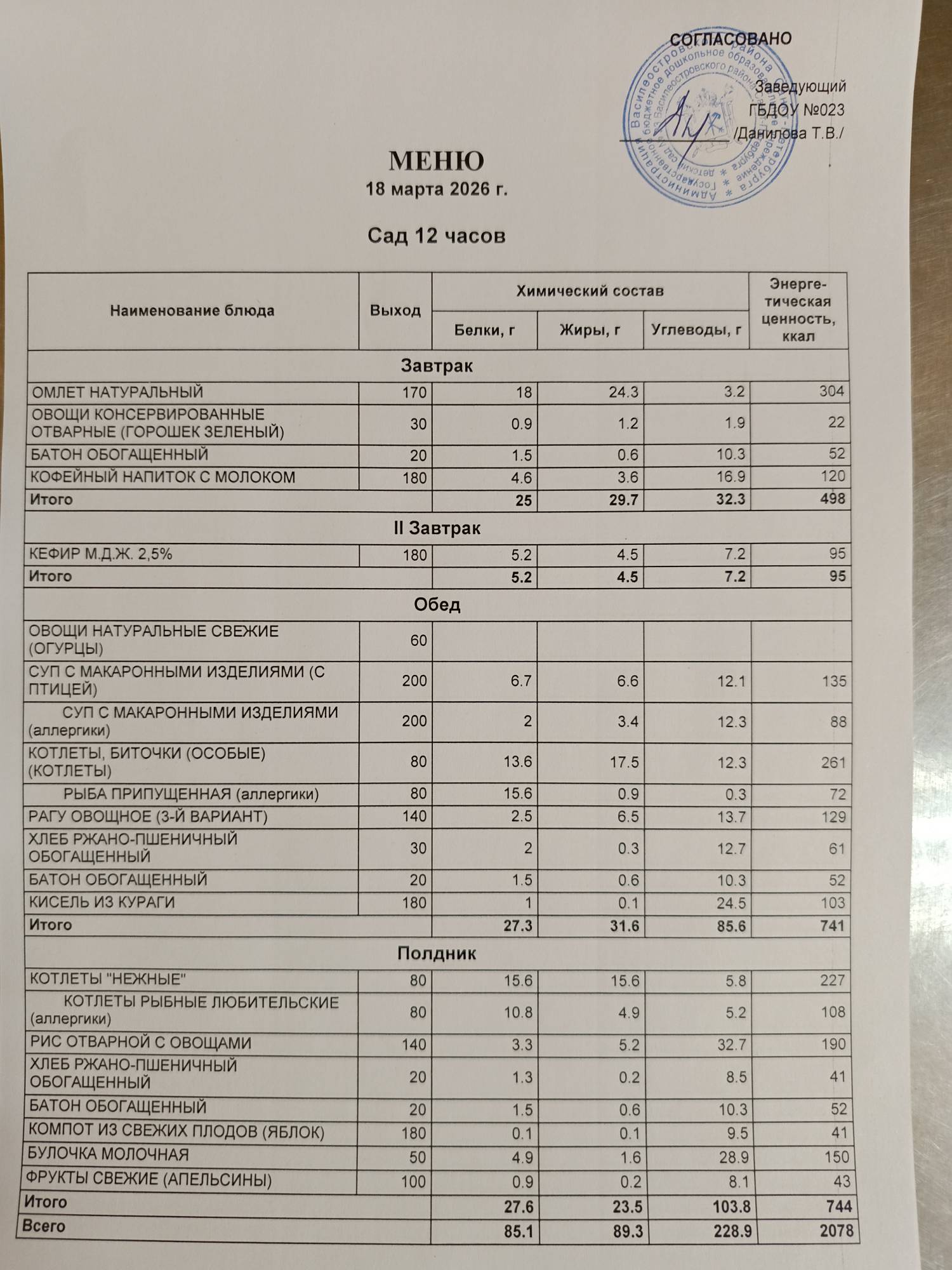 Услуги по организации питания оказывает АКЦИОНЕРНОЕ ОБЩЕСТВО «ФИРМА ФЛОРИДАН» (АО «ФИРМА ФЛОРИДАН») на основании контракта № 23/ПИТ/24-26 на оказание услуг по организации горячего питания для нужд государственного бюджетного дошкольного образовательного учреждения детского сада № 23 Василеостровского района Санкт-Петербурга в 2024-2026 годах от 21.06.2024