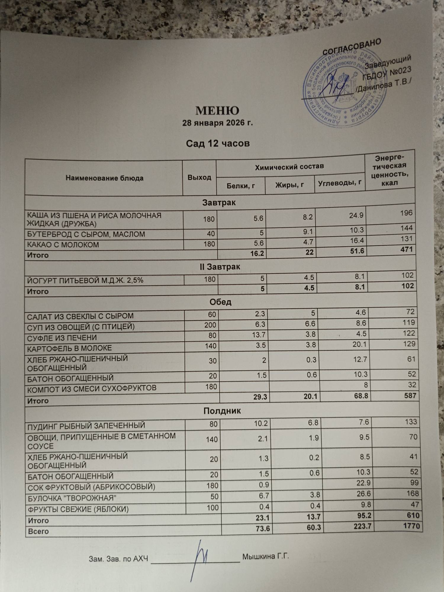 МЕНЮ ЕЖЕДНЕВНОГО ГОРЯЧЕГО ПИТАНИЯ